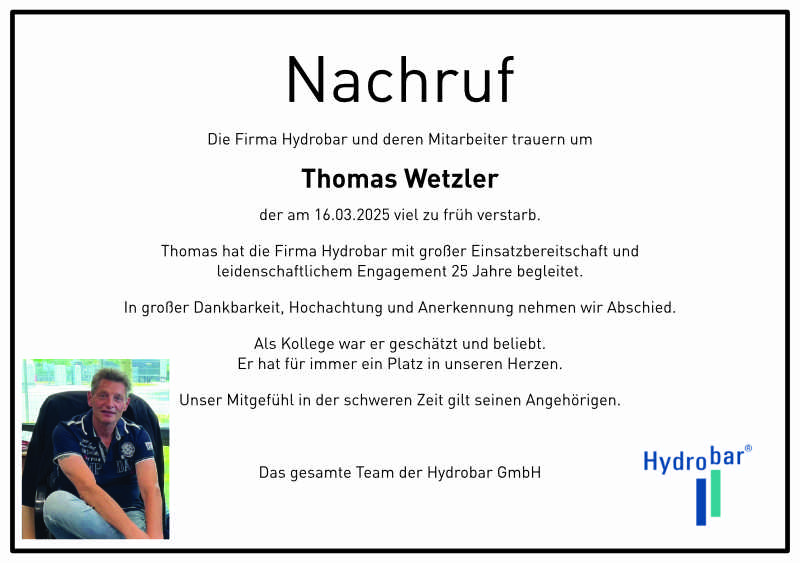Vertriebsleiter der Hydrobar GmbH verstorben